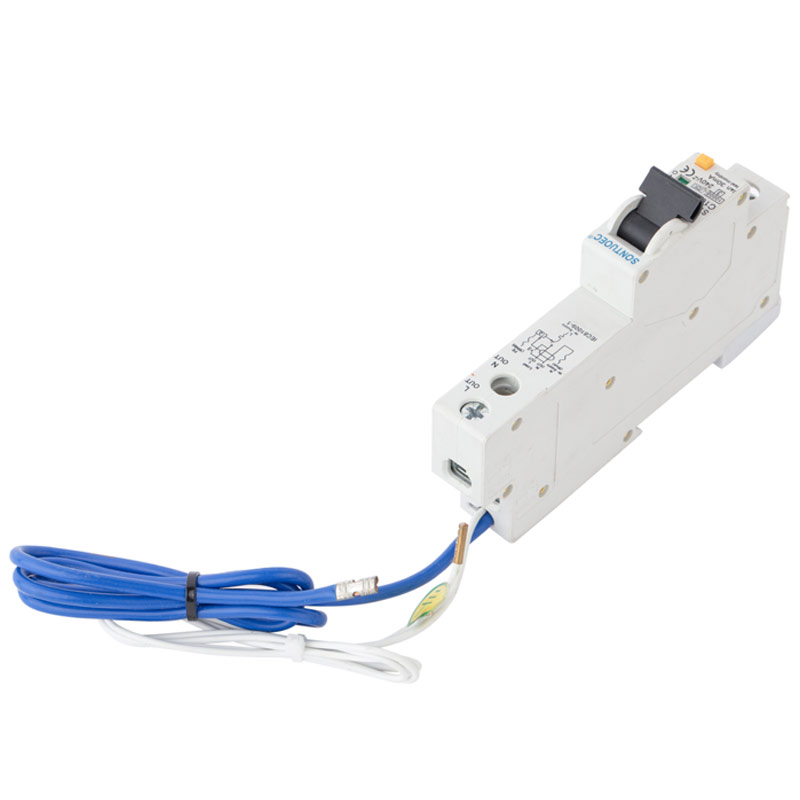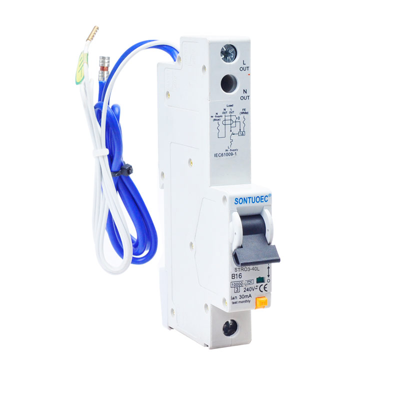 Абарона кароткага замыкання: Калі ў ланцугу адбываецца кароткае замыканне, RCBO можа хутка дзейнічаць, каб адключыць ток кароткага замыкання і абараніць бяспеку ланцуга і абсталявання.
