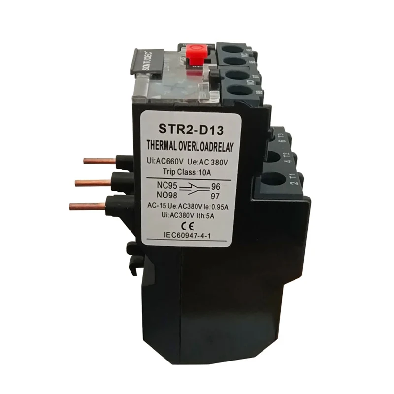 Цеплавое рэле Str2-D13-гэта выкарыстанне току праз цяпло, якое ўтвараецца цеплавым элементам, так што існуюць розныя каэфіцыенты пашырэння біметалічнай дэфармацыі ліста, калі дэфармацыя дасягае пэўнай адлегласці, каб садзейнічаць дзеянню злучальнага стрыжня, каб зрабіць адключэнне кантрольнай схемы, каб дасягнуць перагрузкі рухавіка. У якасці элемента абароны ад перагрузкі рухавіка, цеплавая рэле STR2-D13 мае перавагі невялікіх памераў, простай структуры і нізкай кошту.